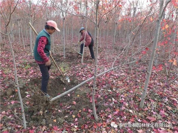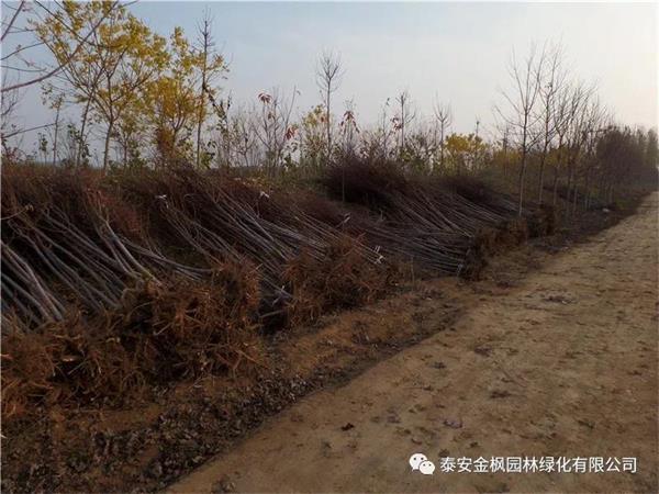今天,泰安金楓種植基地正在緊張有序的起苗、發(fā)貨。今天預(yù)計(jì)發(fā)送5000棵胸徑2-4公分的美國(guó)紅點(diǎn)紅楓。